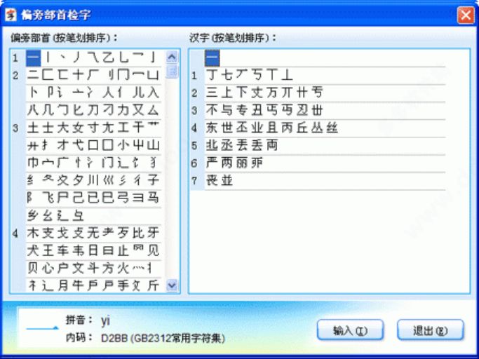 紫光华宇拼音输入法提供“偏旁部首检字”的功能。