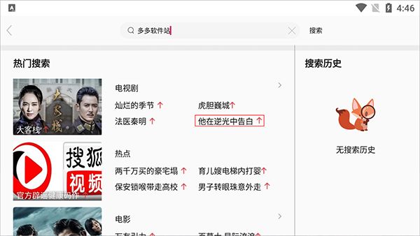 2、搜索页面也会有很多热门搜索推荐给我们,小编在这里用”他在逆光中表白“这部最近蛮火的电视剧做演示