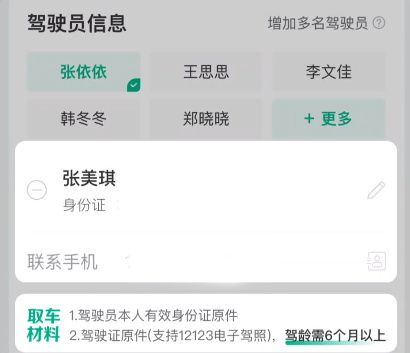 3、填写驾驶员信息,并注意取车材料中相关证件要求。