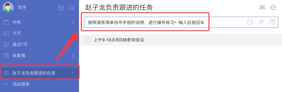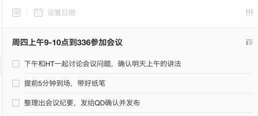 由于将任务改造成下一步行动或者移动到合适的分类,都需要思考和处理,而收集箱就是为了减轻创建任务时的思考和压力而存在的。它是一个临时的任务中转站,你不用担心没分类,也别在意写的是否有条理,需要创建任务时先放进中转站,比如: