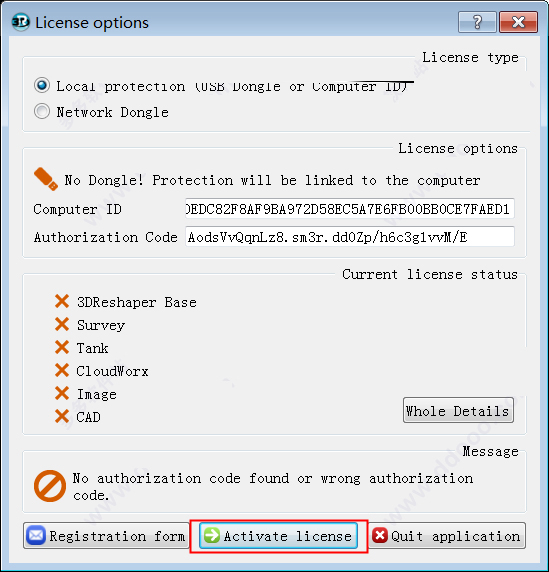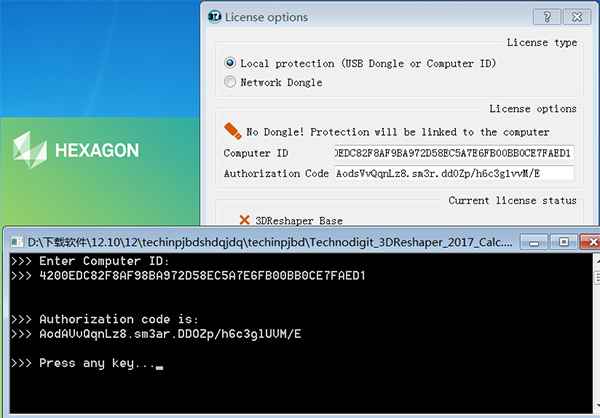 3、然后我们回到数据包中,鼠标双击“Technodigit_3DReshaper_2017_Calc”注册机将其运行,将computer id复制到注册机中,如果无法复制请手动输入即可点击点enter键,获取注册码,再将注册码复制到软件的注册窗口中。
