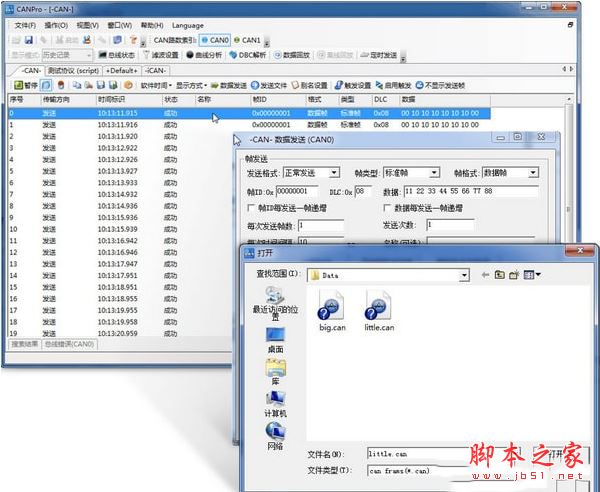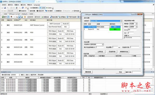 支持CANopen、DeviceNet、J1939协议的解析与协议数据发送