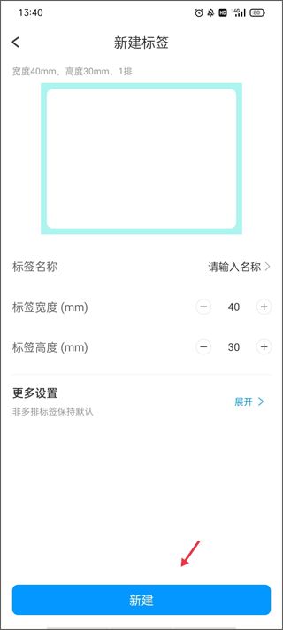 2、输入标签名称、标签宽度、标签高度,点击【新建】即可。