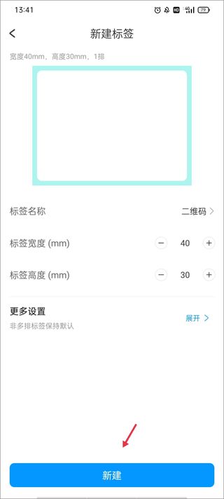 1、在首页点击【新建标签】,同样输入标签名称、标签宽度、标签高度,点击【新建】。