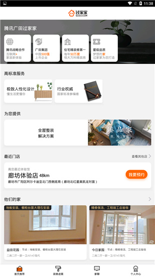广田集团&过家家累计承接超过50万套恒大、万科、碧桂园、保利等地产公司精装楼盘,总结了6000多条省级工艺标准,获得国家专利172项, 参编国家及行业标准80余项。腾讯过家家将广田多年的施工积累运用到家装领域,开创性的建立36个标准化施工节点,严格保证施工品质和进度。