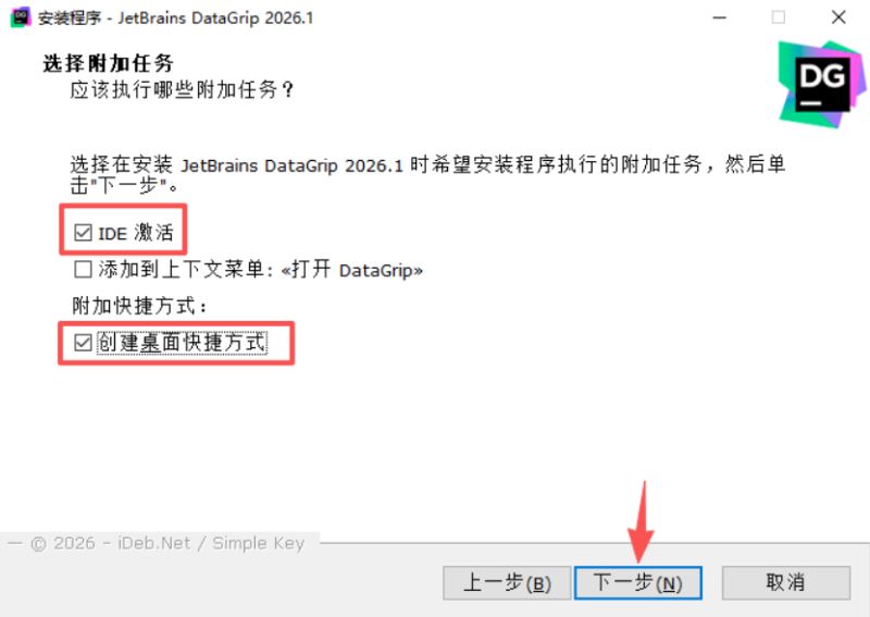 4、分别勾选【IDE激活】与【创建桌面快捷方式】,点击【下一步】。