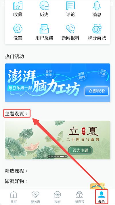 1、用户点击右下角“我的”进入个人中心,在下方点击“主题设置”。