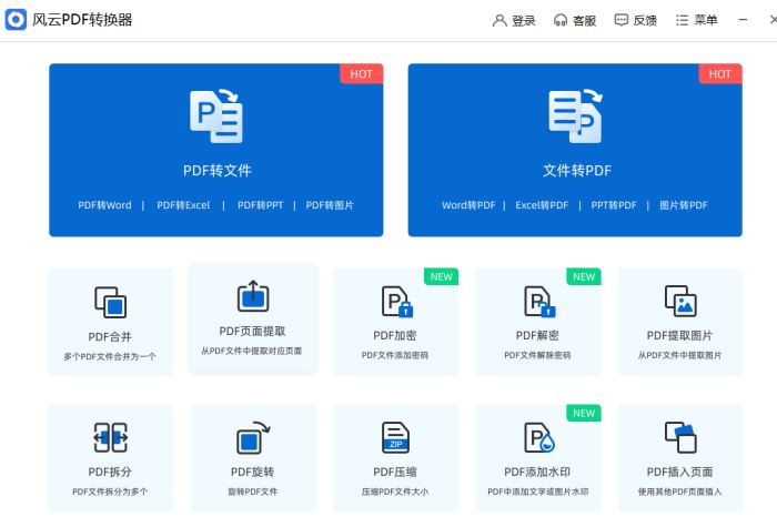 风云pdf转换器是一款专业的PDF转换软件,这款软件可以将PDF格式的文件转换成word、excel和PPT等,支持将图片转换成pdf文件且还可以对pdf文档进行拆分、压缩以及合并,提取pdf文档中的图片等功能。本站提供的是该软件的安装版本,欢迎需要的朋友前来本站下载使用。