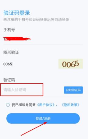 在验证码输入框中填入收到的验证码,点击登录按钮即可完成账号登录流程。