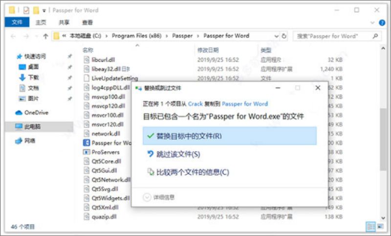 3、成功安装后,复制Crack UZ1破解文件夹中的Passper for Word.exe到软件安装目录下替换原文件;