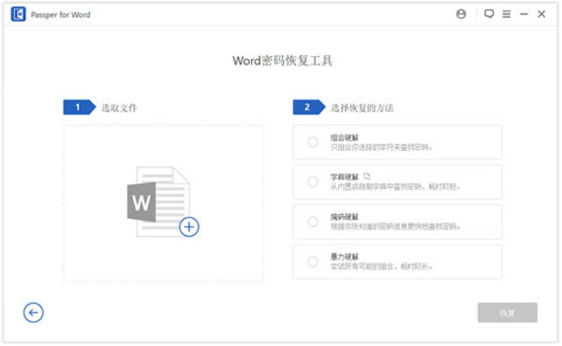 忘记密码,无法打开Word文件?Passper提供4种攻击类型来恢复密码。