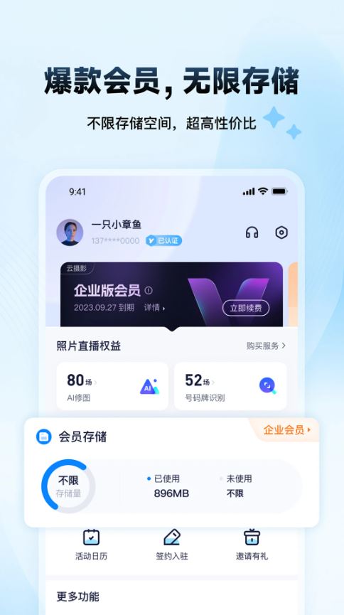1、云端安全储存您的相机文件,随手即可访问文件的内容。