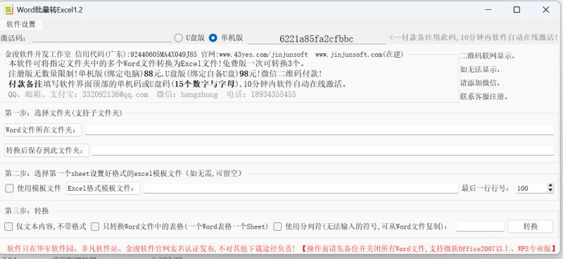 金浚WORD批量转EXCEL v1.2 官方绿色版
