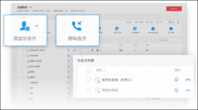 搜索通讯录,邀请与会者(软终端/硬终端),快速开会。