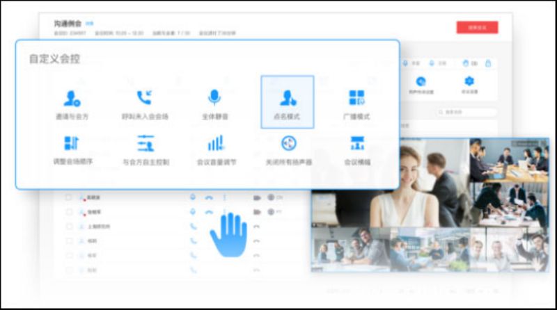 5、丰富的会控能力,支持全场静音、多画面设置、支持点名、广播、支持会中邀请与会人、主持人转移、锁定会议、开启录播等,会议主持更轻松