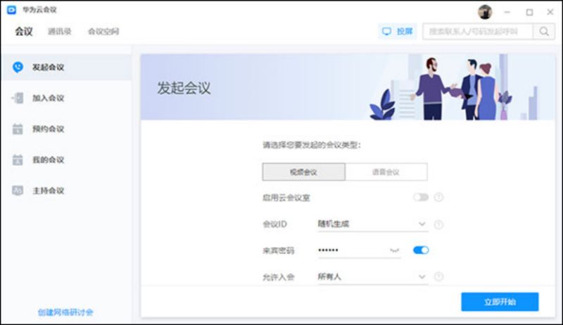 随机会议ID:随机产生,适合发起临时讨论,或召开安全性高的会议。