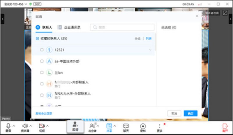-添加企业内部成员或外部联系人参会。