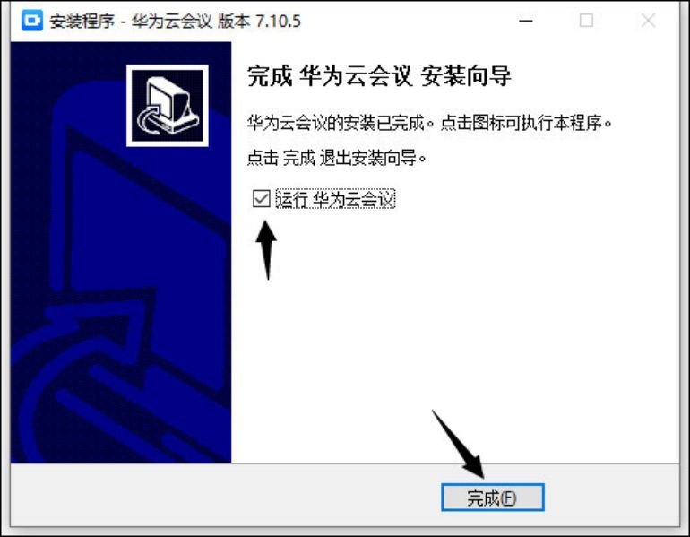 5、软件安装向导完成,可以勾选直接运行华为会议。