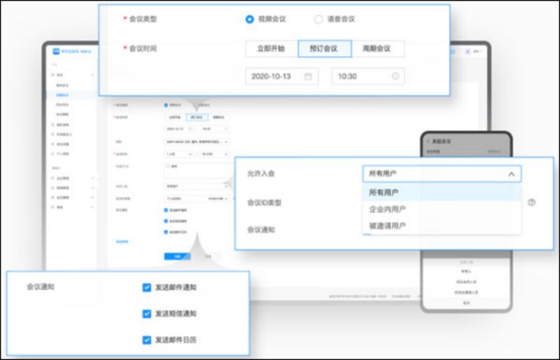 2、支持所有人入会,仅企业内人员入会,仅会议邀请人员入会,会议安全从选择入会者开始
