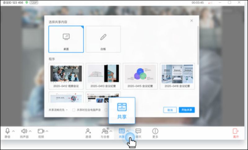 -灵活管理成员共享屏幕、文档协作,支持转移主持人权限给其他与会者