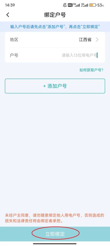 5、完成实名认证后,输入户号,最后点击屏幕下方的“立即绑定”即可。