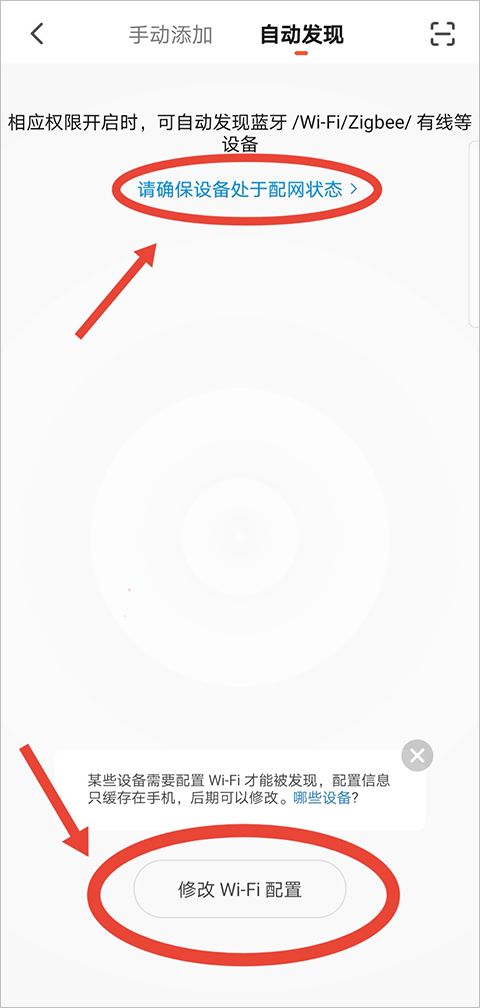 方法二: 自动发现(确保设备处于配网状态)-修改Wi-Fi配置。