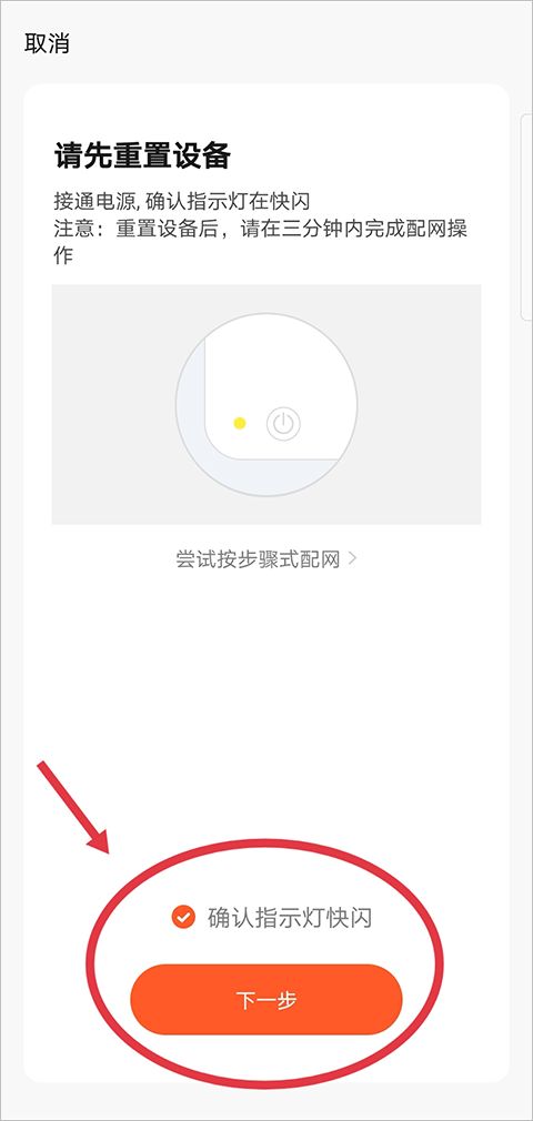 (5)若配网失败,请点击“确保设备处于配网状态”,按照提示进行设备重置。