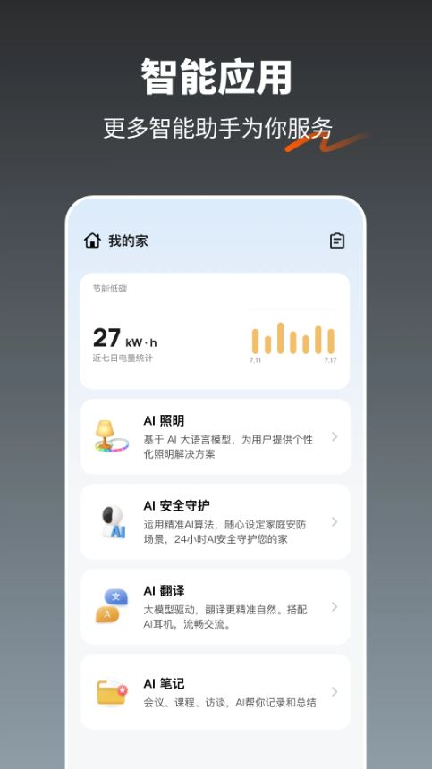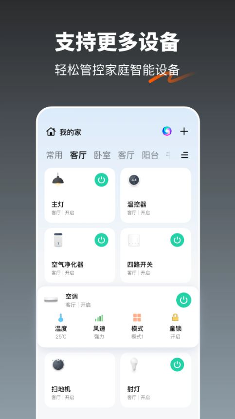 4、稳定的连接、快速的响应,让你随时随地实现对智能设备的操控,实时掌控家中设备状态。