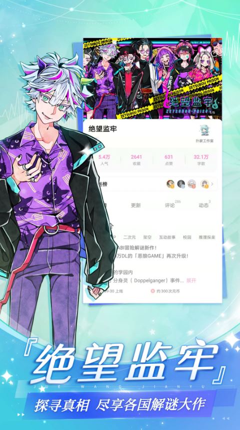 1、不再传统的方式看小说,盯着密密麻麻的枯燥文字阅读,这是一款颠覆你想象的互动式阅读类应用。