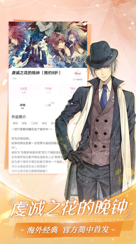 画风精美,超高清背景。各式高颜值主角等你相遇,自主选择剧情走向,谱出你的专属恋情!