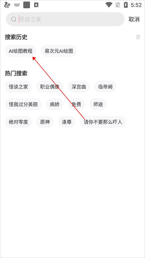 2、如果新用户不小心错过了刚才的弹窗入口,或者是老用户无法找到时,可以在应用首页顶部的搜索框中输入【ai绘图教程】。