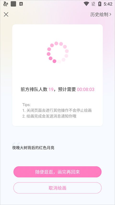 9、然后用户继续按上述方式找到入口,就可以看到刚才的作品了,如果看不到可以点击页面右上角的【历史绘画】来查看。