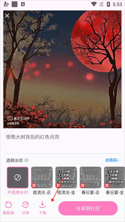10、作品查看时可以对作品进行重画、二次加工、免费下载、分享等操作。