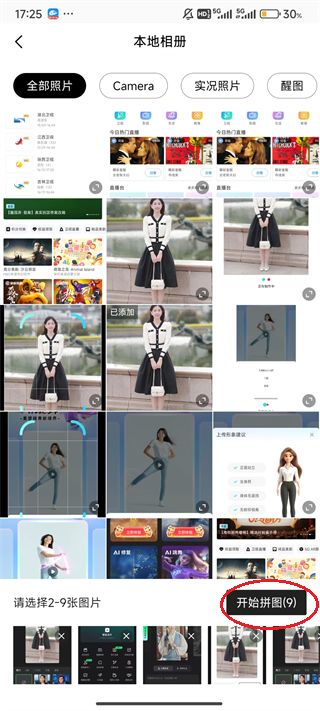 2、选择需要拼图的照片,随后点击屏幕右下方的“开始拼图”。