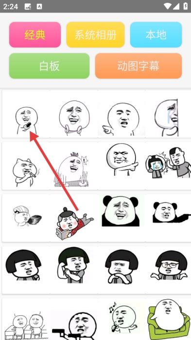 3、在表情素材选择页,选择经典表情素材,进入编辑界面。