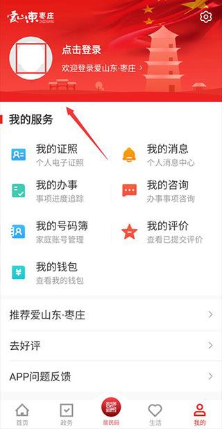 爱山东枣庄这个软件怎么登录呢