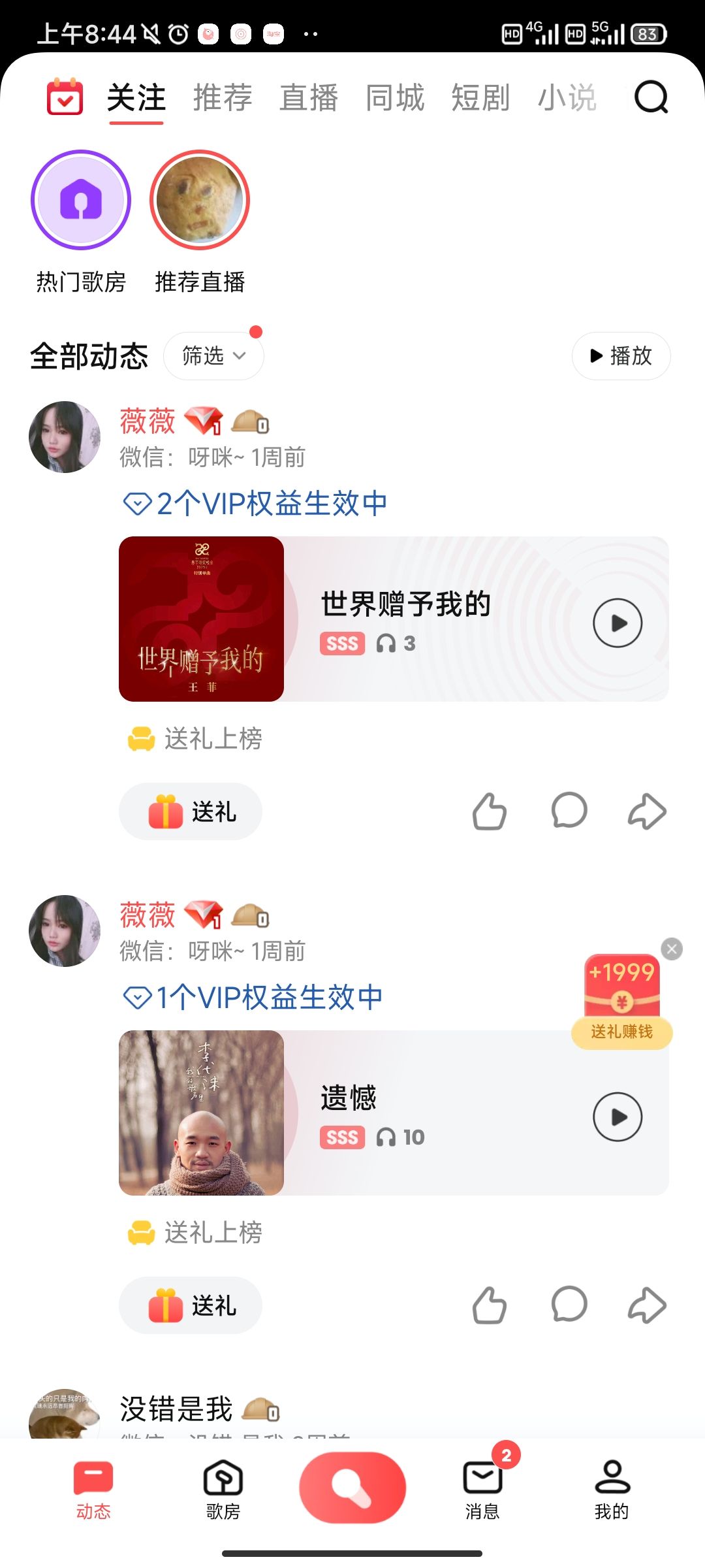 动态页曝光,实时参与歌房和直播
