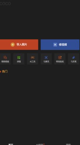 2、进入软件首页可导入图片、导入视频进行修改或剪辑。