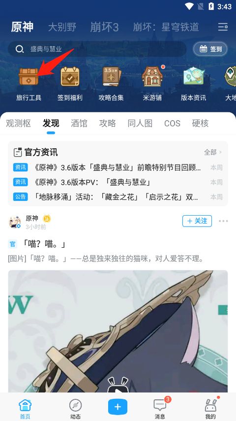 7.在米游社获得的关注、赞、回复和社区通知都会集中到APP的消息页面,接收消息再也不用切换游戏!
