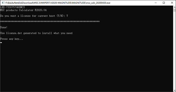 2、首先进入“MAGNiTUDE”文件夹下运行“msc_calc_20200430.exe”会自动生成许可证文件,输入y即可;