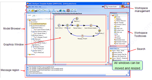 该工作空间存在一组独特的工具箱。这些工具可用于快速访问操作和模板,并存储在用户的计算机上。工作区工具箱上还提供了从SimManager浏览和检索项目的功能