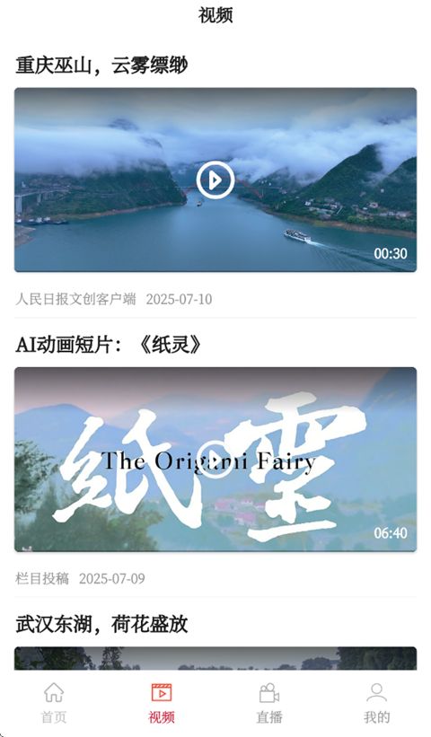 2、软件还有着专门的【视频】页面,这里显示的短视频包含了城市宣传、景色欣赏、积极正向等内容。