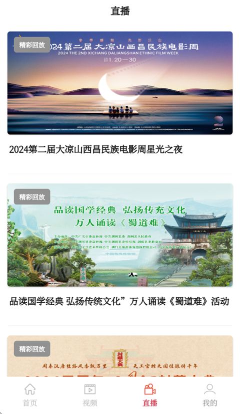 3、切换到【直播】页面,用户还可以查看各类文创直播,如果不小心错过直播,还可以查看精彩回放。