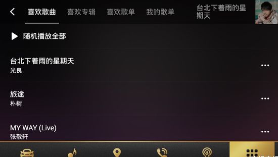 5、首页-本地音乐,为当前车机所下载的音乐列表,即时没登录QQ同步,也可以直接收听;