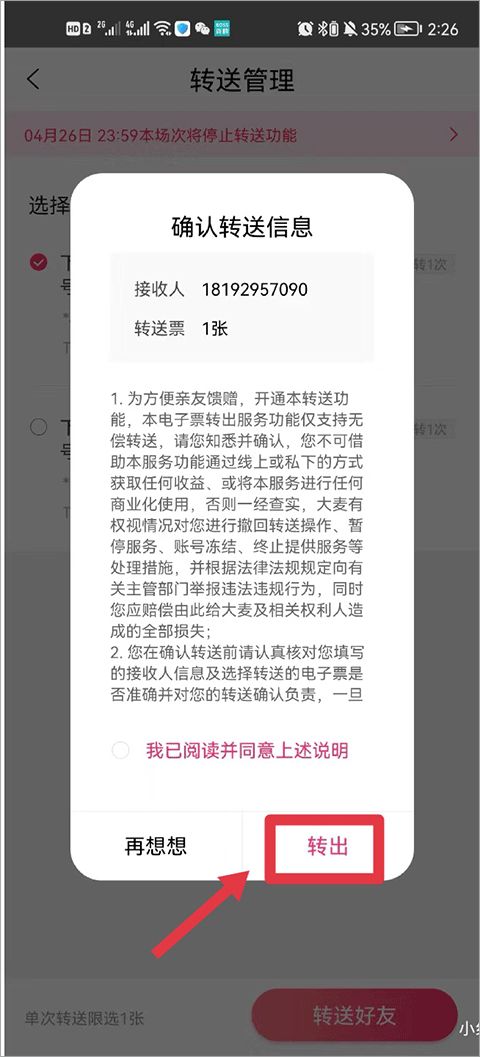 4、最后确认转送信息并点击转送即可。