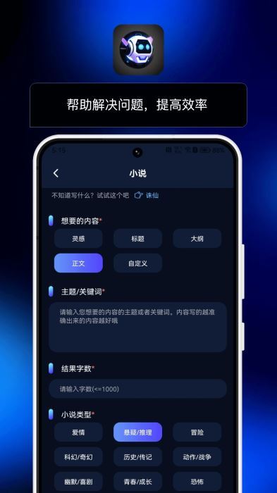 AI小助理手机端使用的智能软件,这款软件提供了聊天,创作,写文章,诗词歌赋,制作学习计划及工作总结等功能,先进的自然语言处理技术和深度学习算法提高了用户的使用体验,欢迎下载使用。