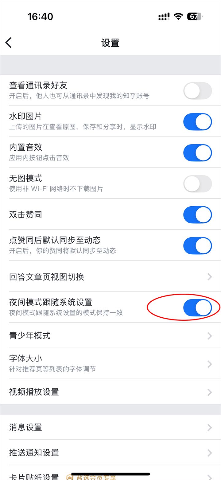 3、跳转到设置界面关闭夜间模式跟随系统设置;