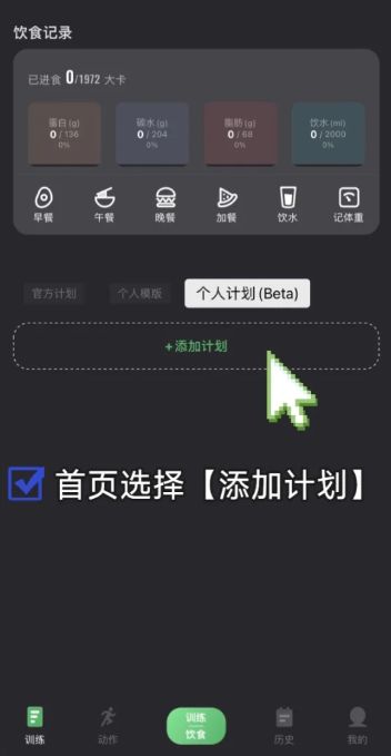 选择开始日期:设置好计划内容后,点击保存,回到“个人计划”板块,点击已创建的计划,选择计划开始日期。