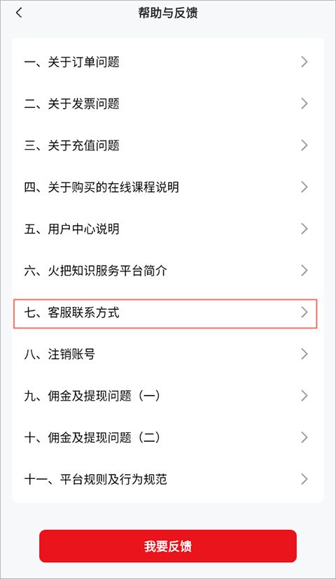 2、点击第七个“客服联系方式”即可进行联系啦。