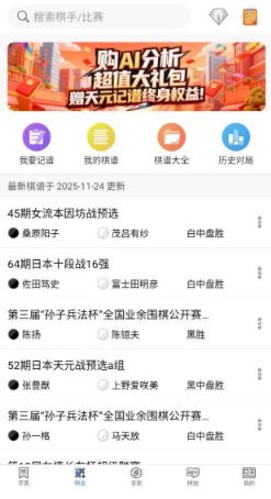 4、最新的棋谱实时更新,你可以在这里多多的观看分析,提升自己的棋艺。